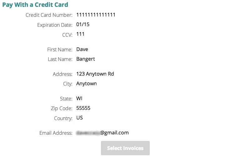 If you would like to pay your invoices online, please check the invoices that you would like to pay and click the button at the bottom of the page. If the button is grey, then you have not selected an invoice. You are required to fill out ALL the informational fields.